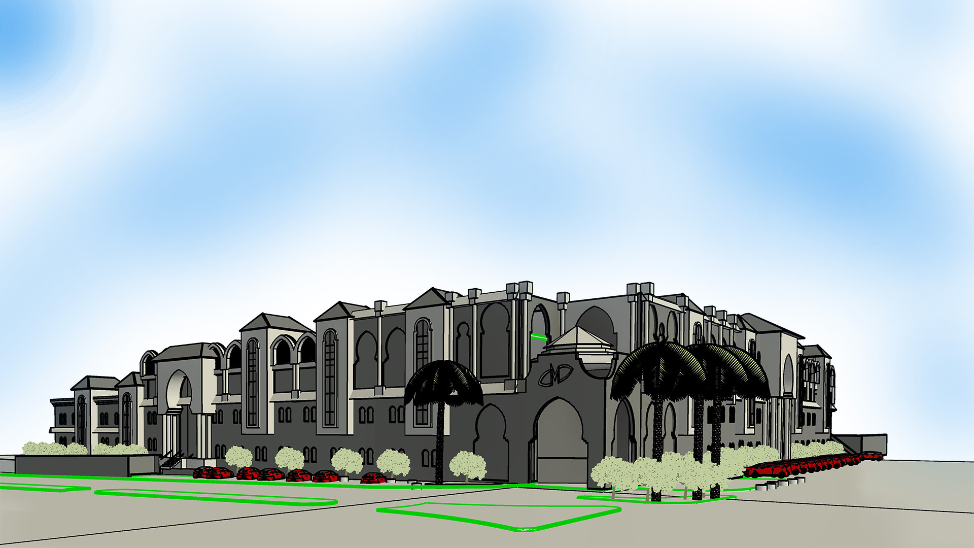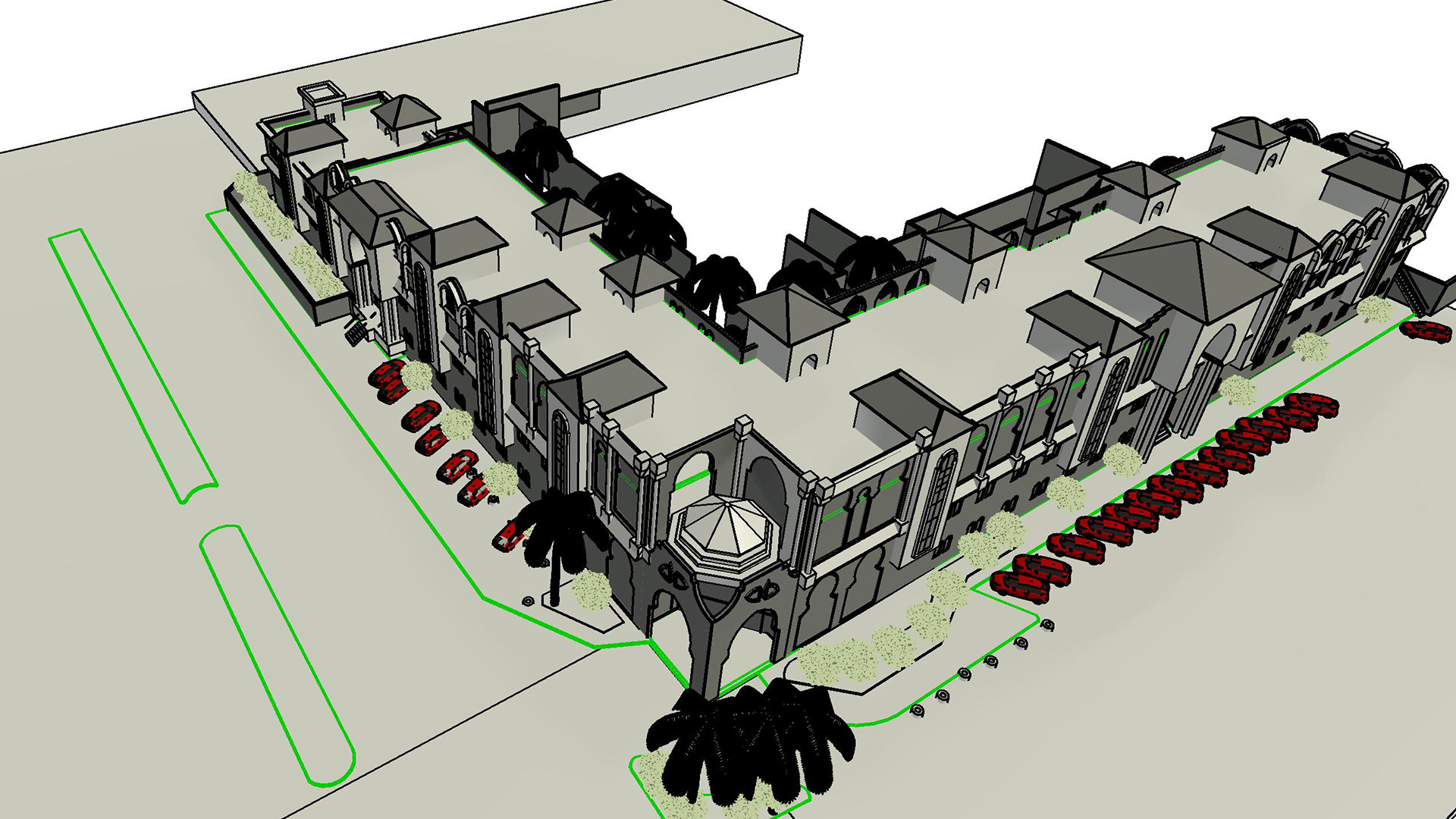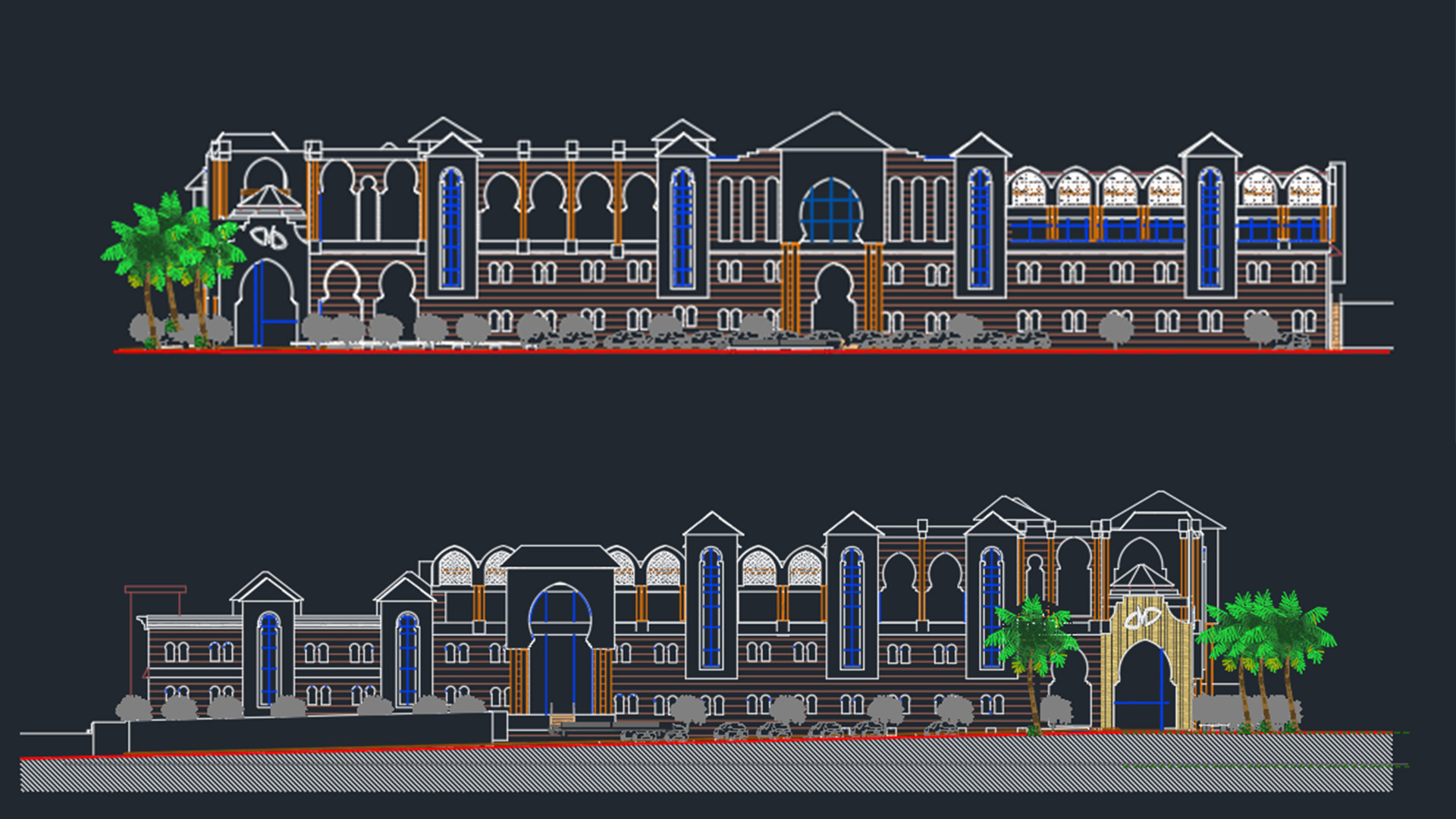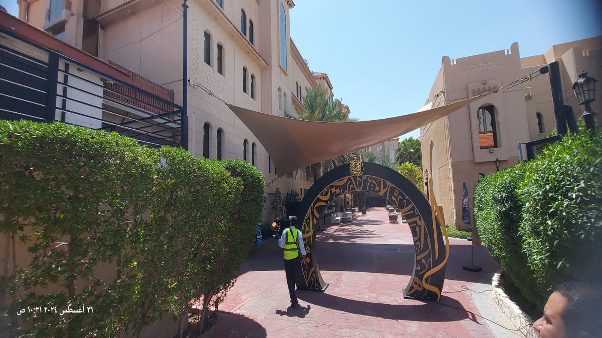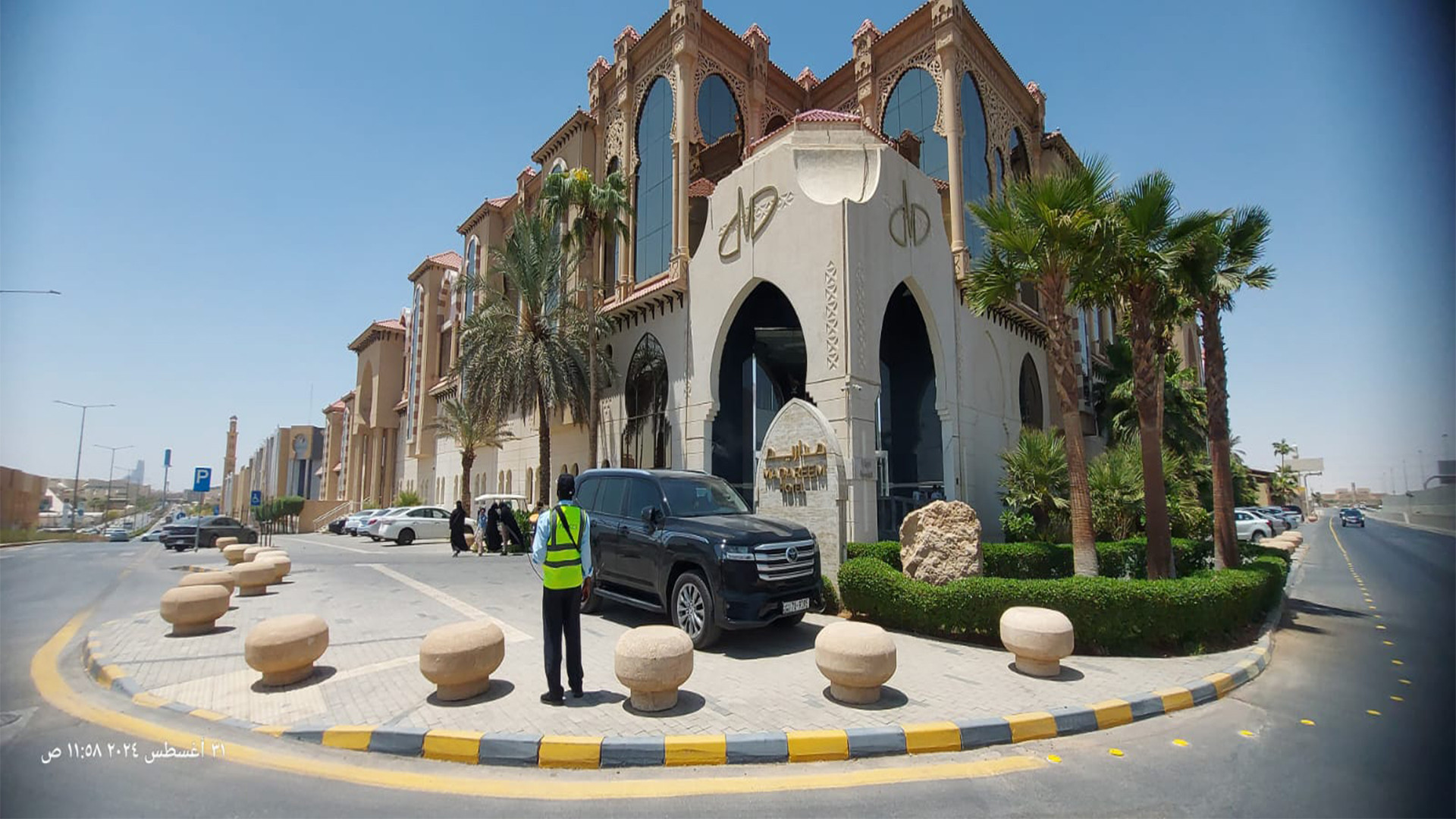 يحتوي المبني من 4 طوابق تشمل غرف فندقيه متميزه و يحتوي علي صالات افراح و مطاعم و كافيهات و نادي رياضي