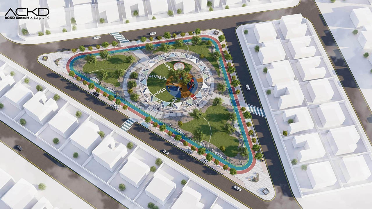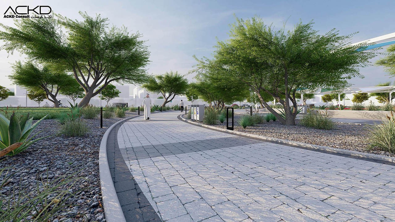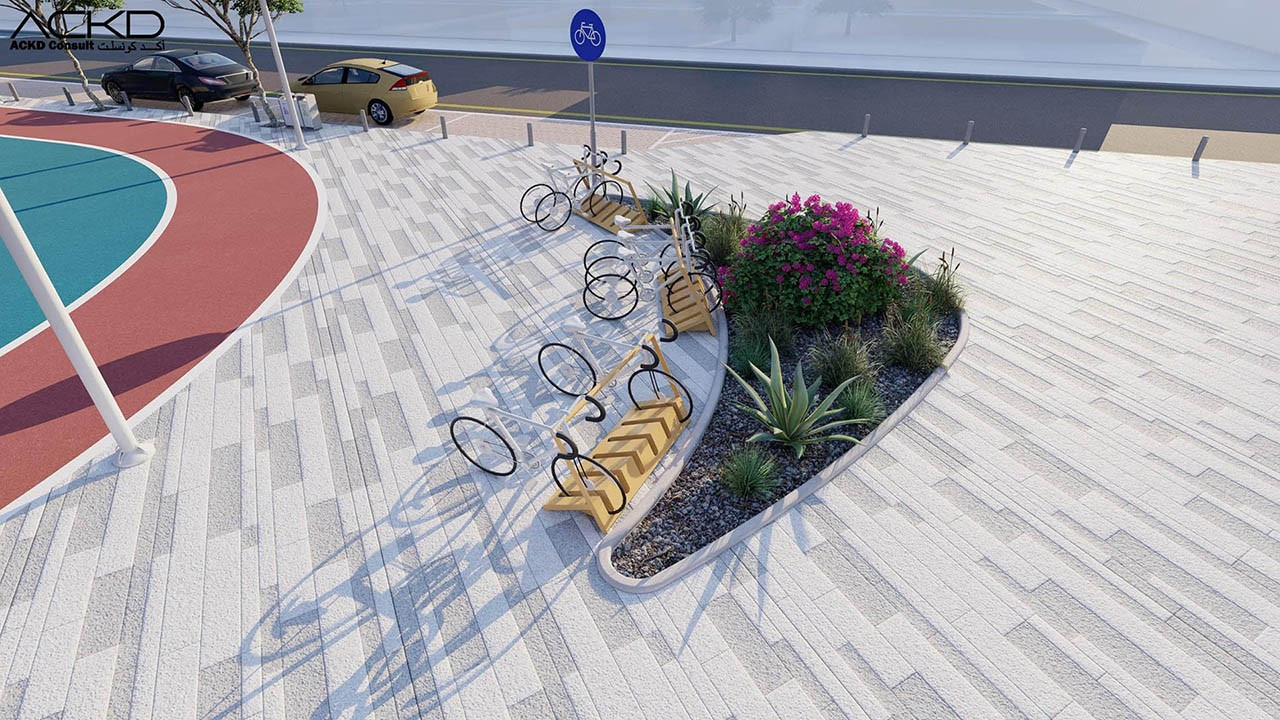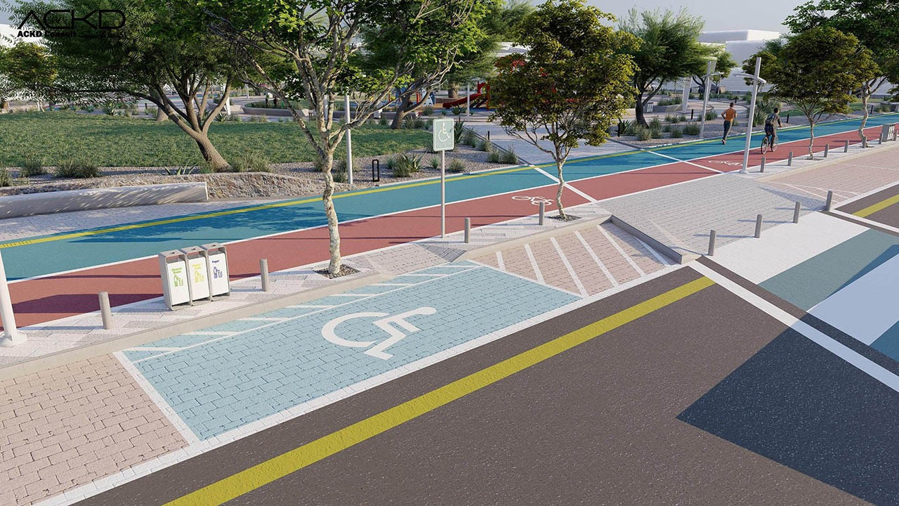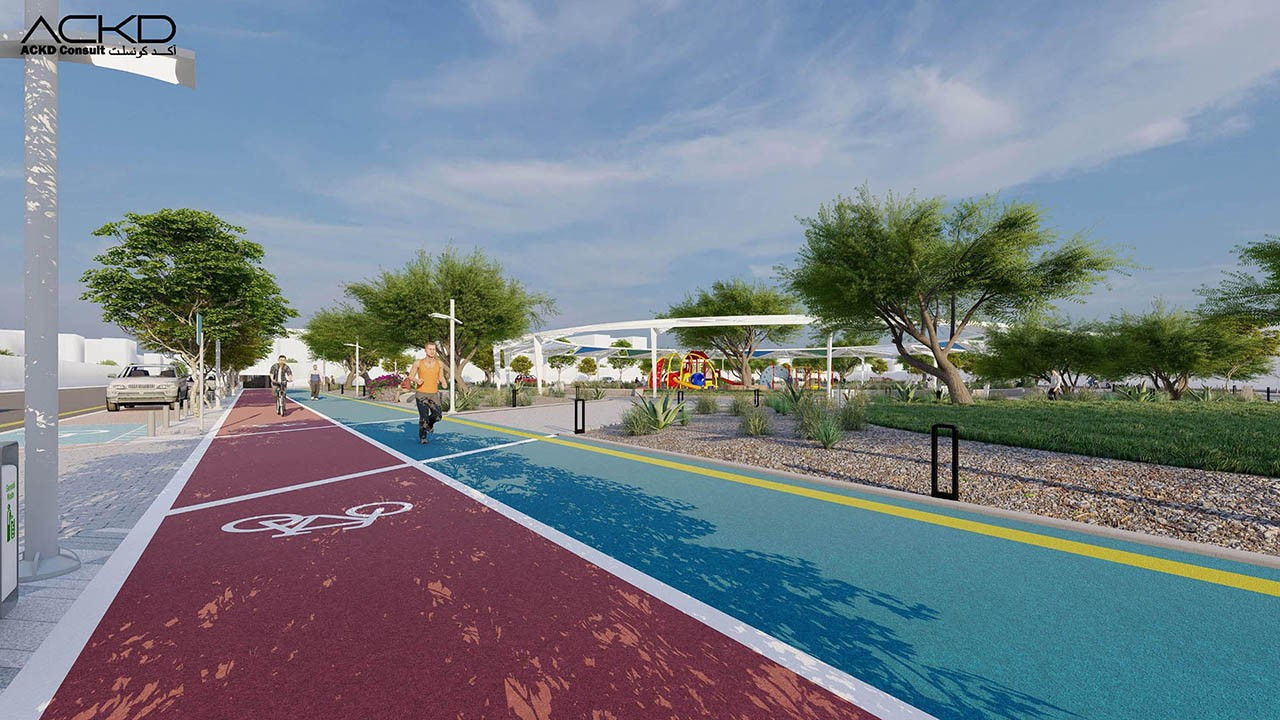 مضمار للمشاة و آخر للدراجات الهوائية: مسارات مصممة للمشي وركوب الدراجات، مع توفير مراعاة للراحة والسلامة.