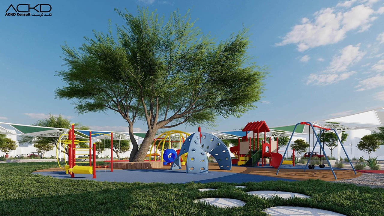 مناطق ألعاب للأطفال: مناطق لعب مصممة لتوفير بيئة آمنة وممتعة للأطفال، باستخدام مواد صديقة للبيئة.