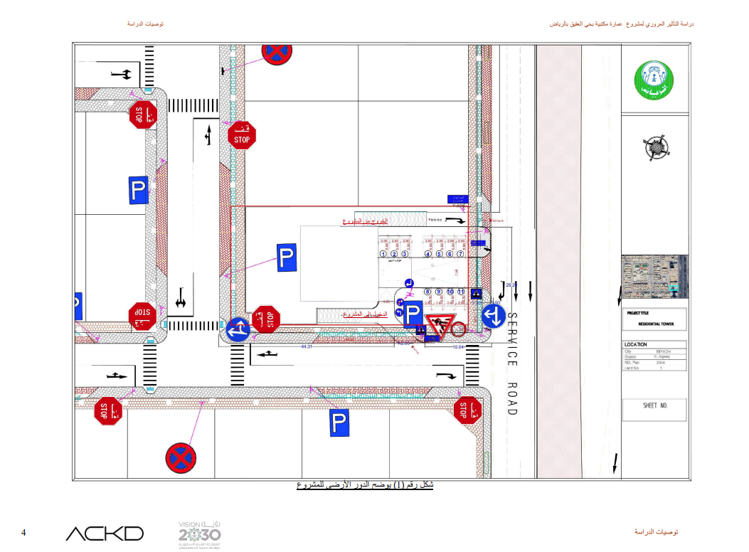 تقوم ACKD Consult بإعداد دراسة الأثر المروري لمجمع مكتبي مقترح على طريق الملك فهد، وتشمل الدراسة ما يلي: