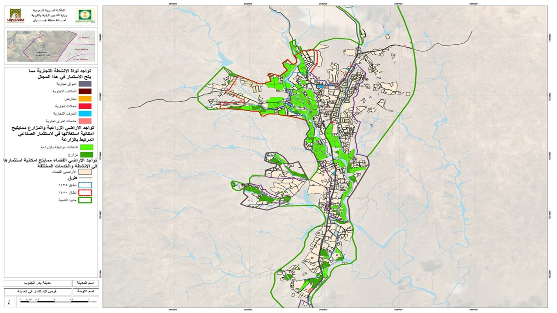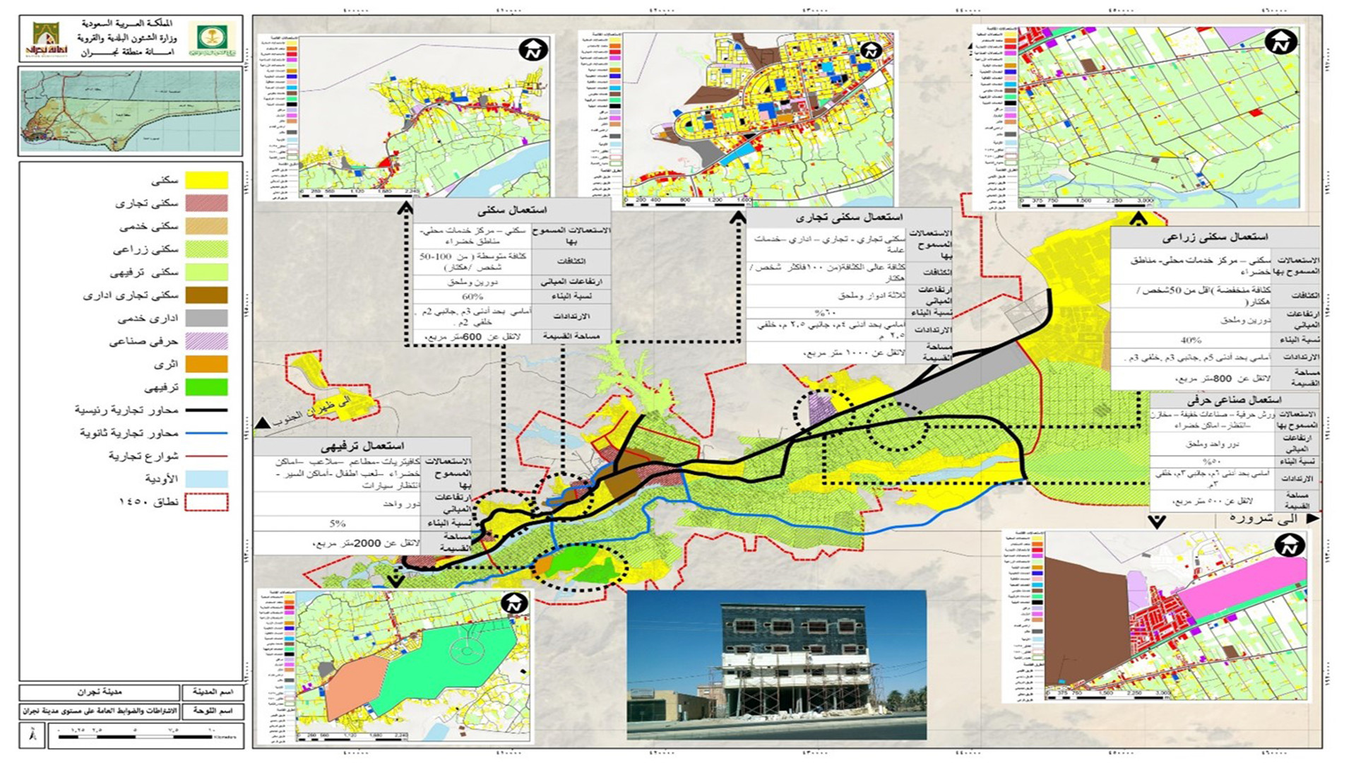 دراسة تقسيم الأراضي حسب خصائصها: زراعية وجيولوجية وسياحية وحضرية مع كافة الخدمات مثل المدارس والمستشفيات ... الخ وخدمات البنية التحتية مثل المياه والكهرباء والصرف الصحي ... الخ.