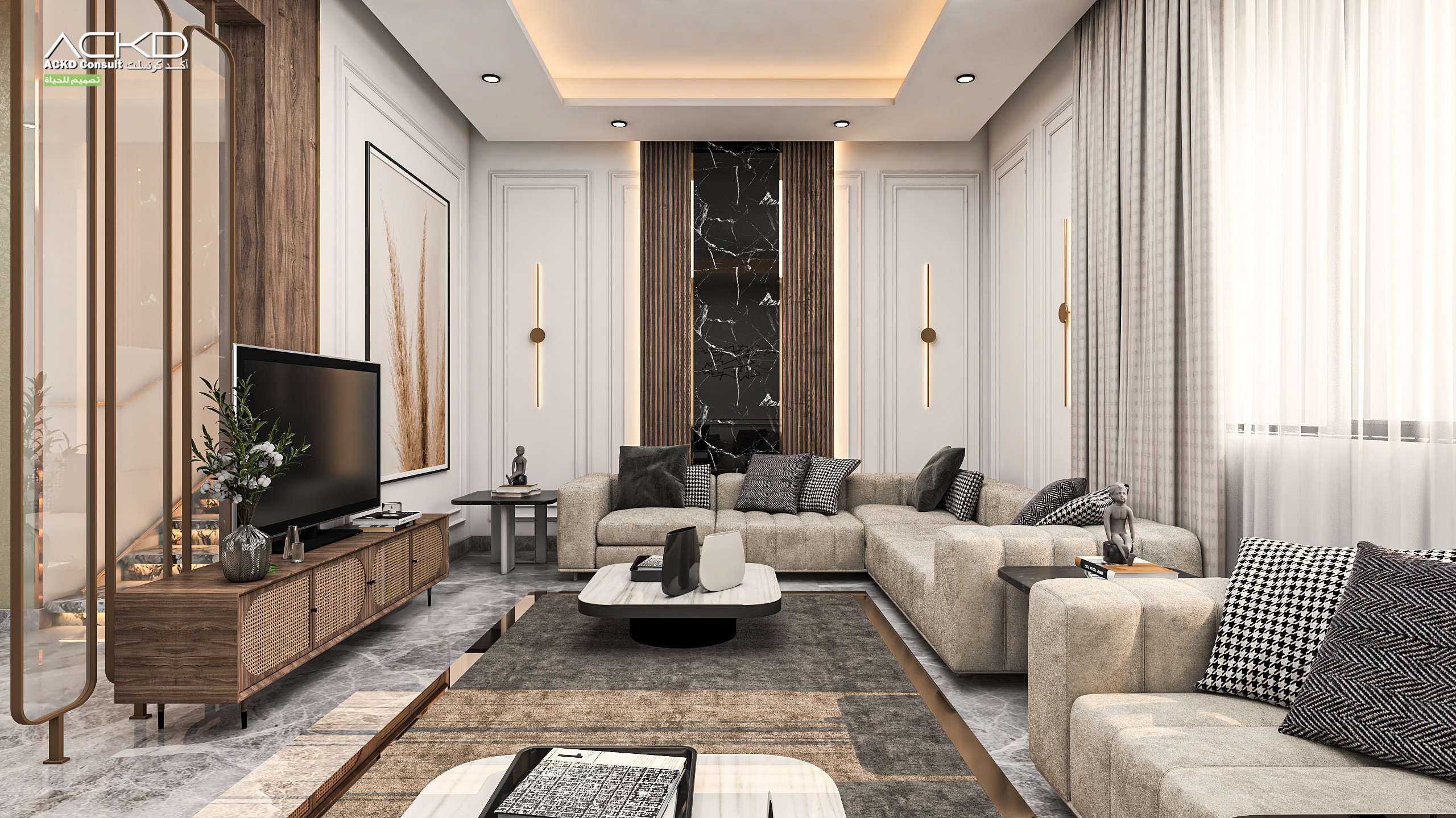 مشروع تصميم داخلي تصميم داخلي حديث لفيلا في النرجس | السعودية | ACKD Consult