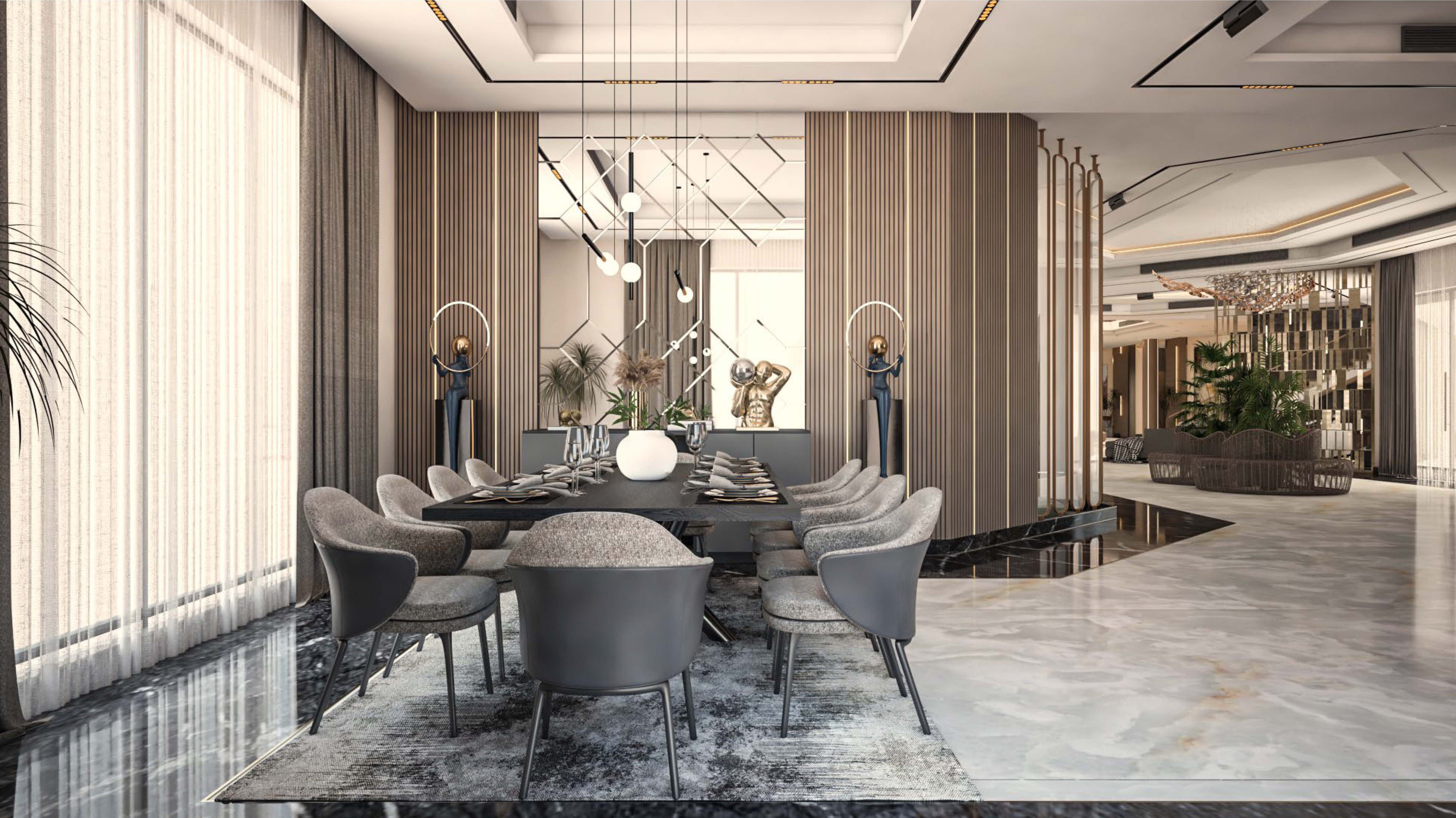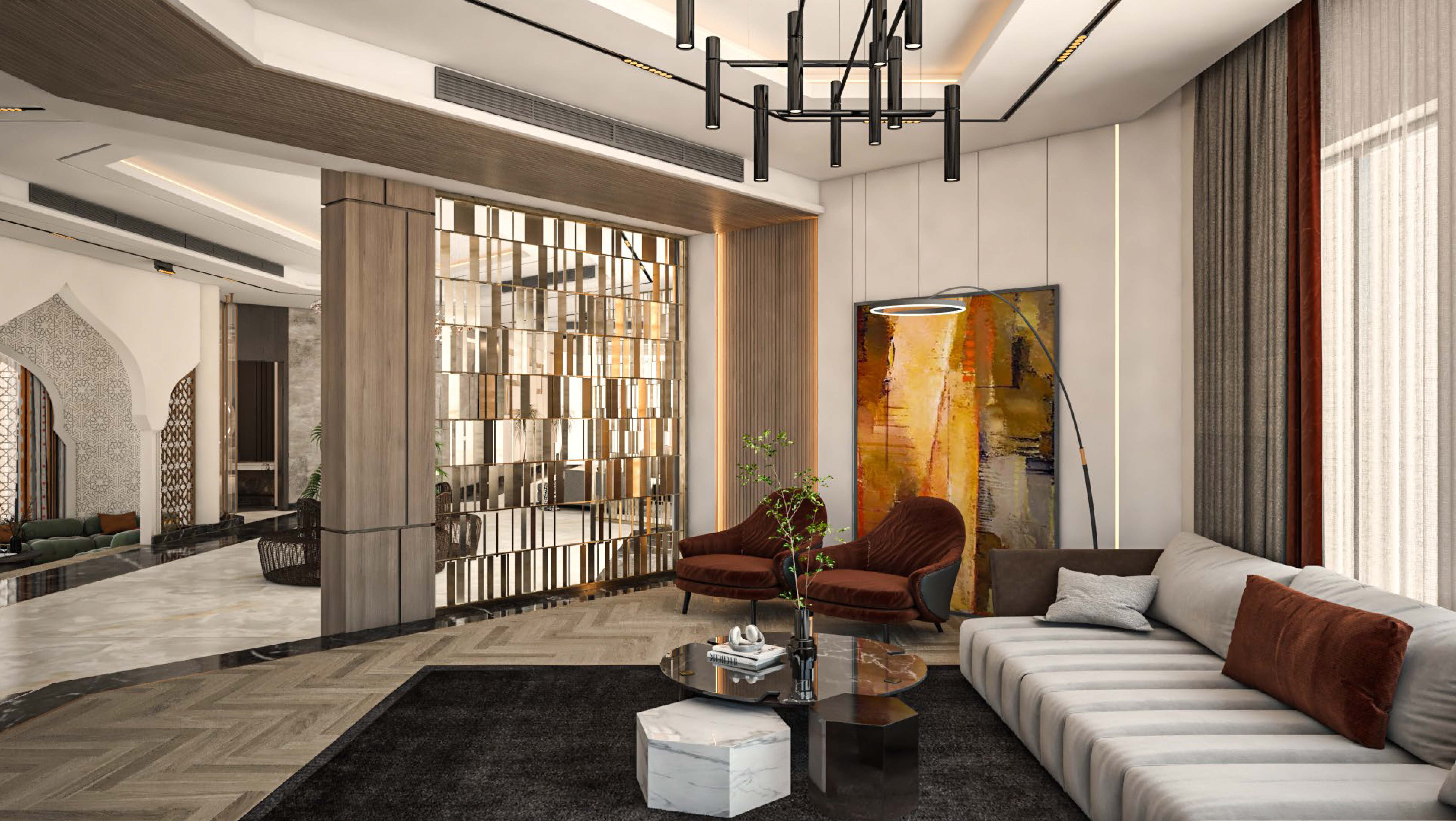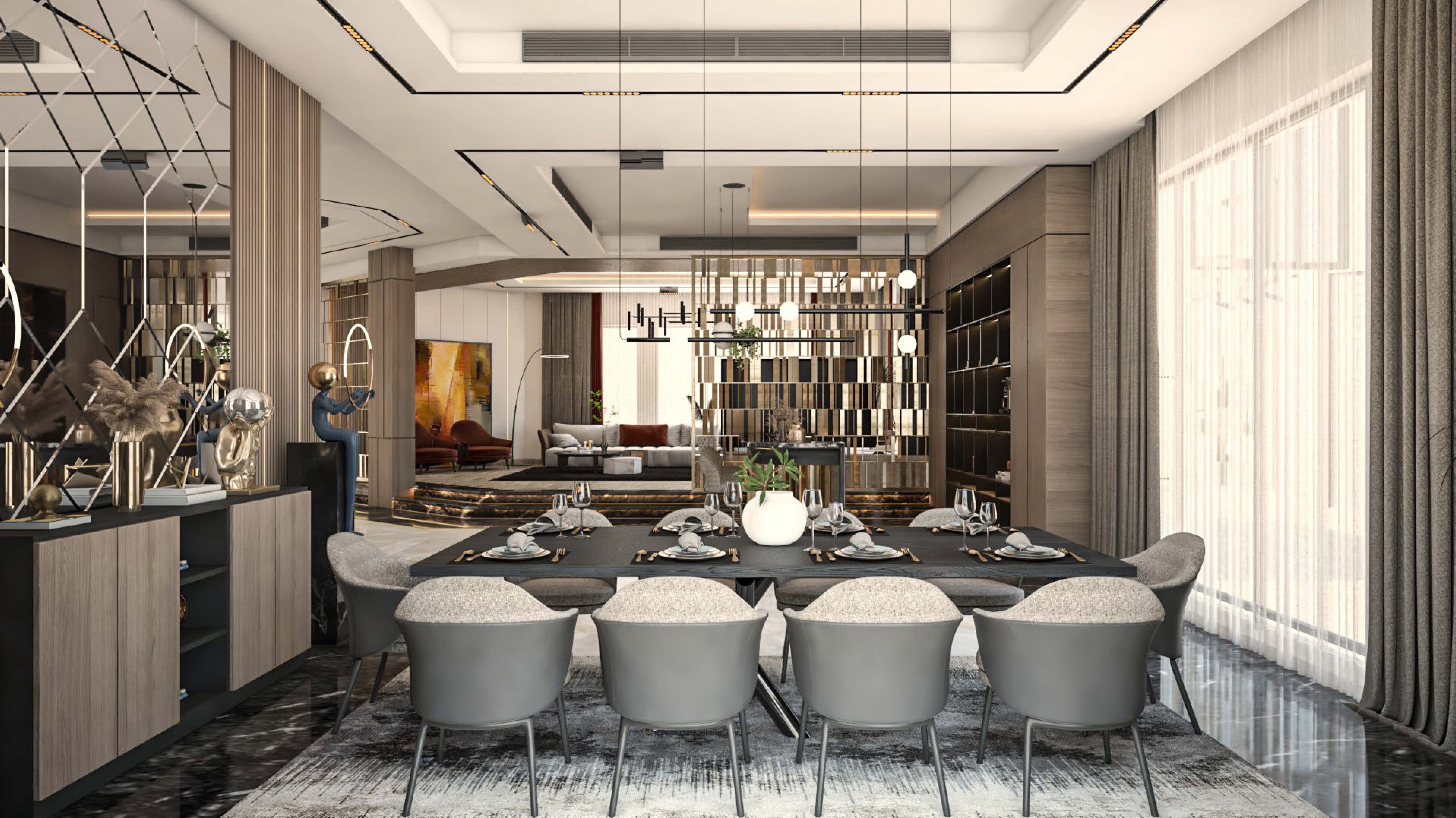 المساحات الواسعة من غرف معيشه و غرف استقبال للضيوف وقاعات طعام من مزيج الفخامة و الروح المعاصرة توفر الراحة والترف في آن واحد.