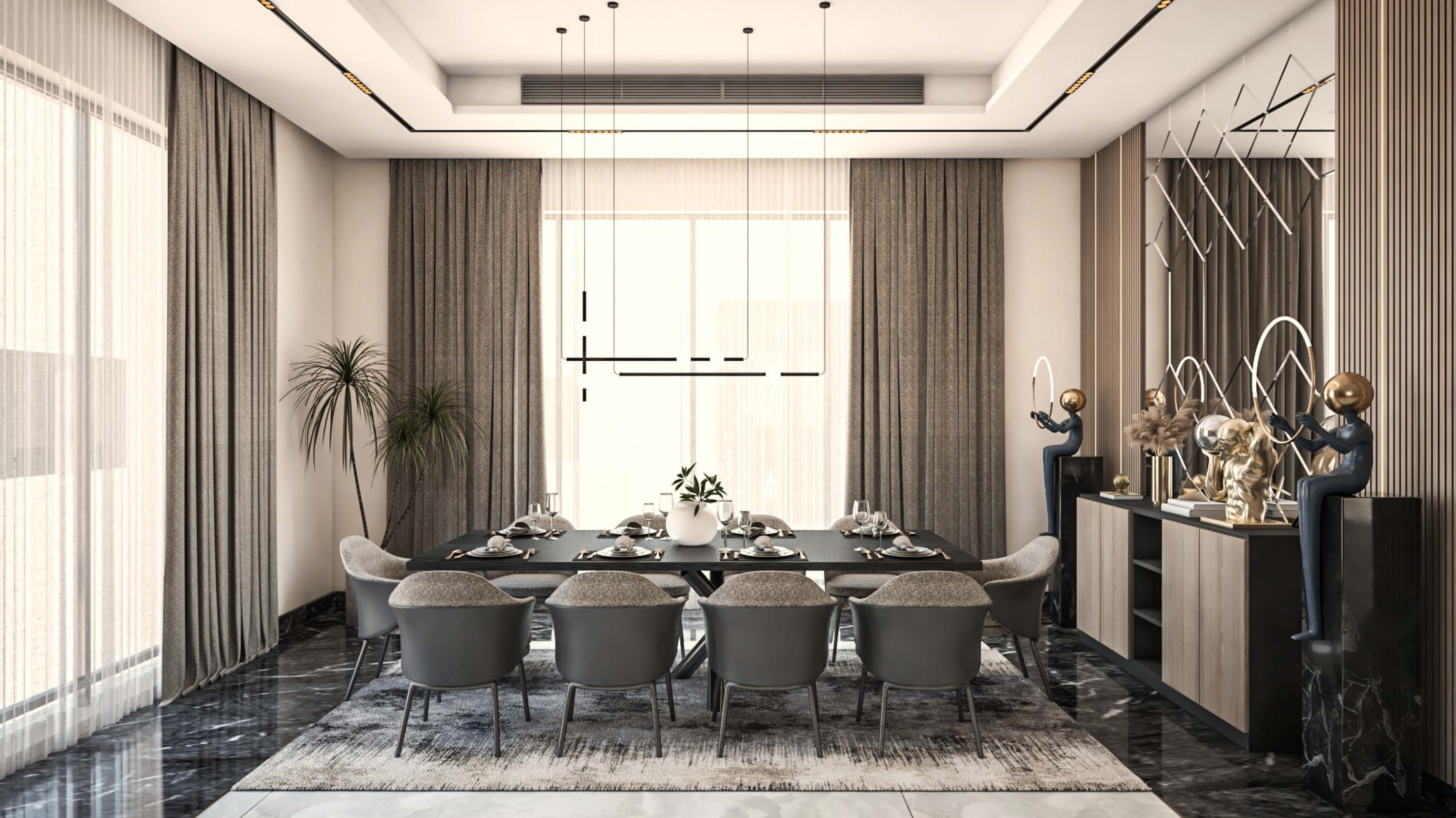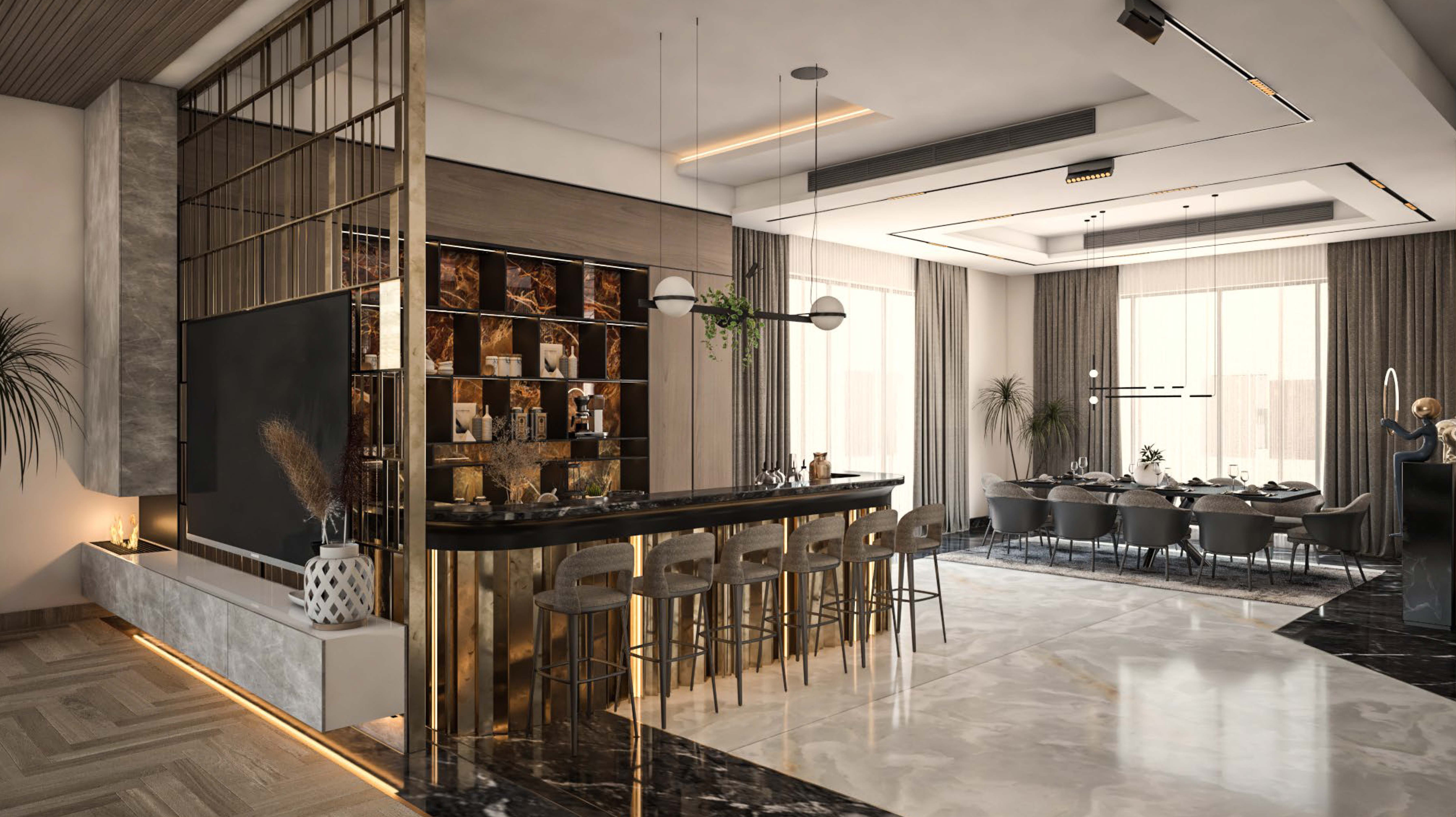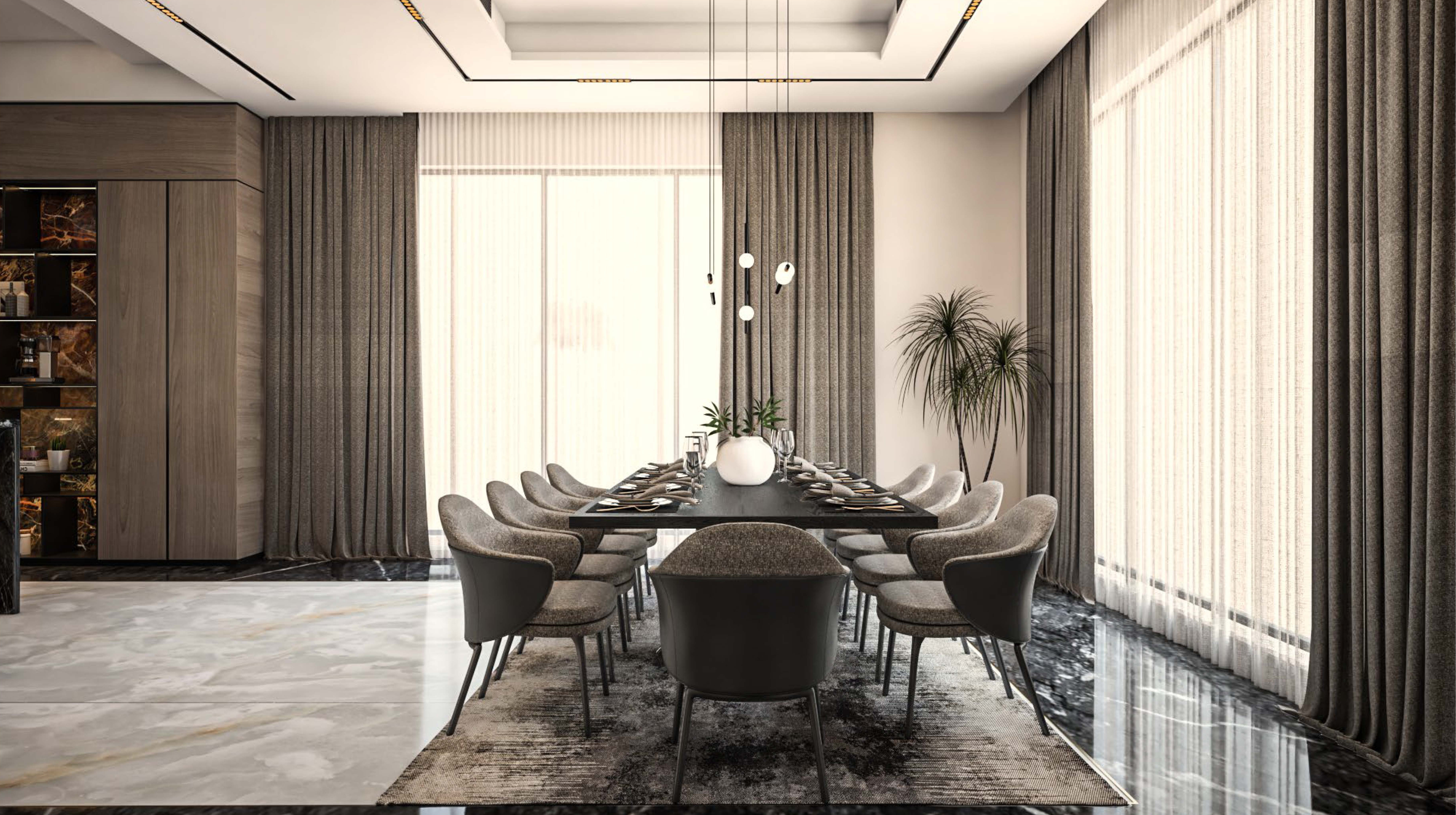المساحات الواسعة من غرف معيشه و غرف استقبال للضيوف وقاعات طعام من مزيج الفخامة و الروح المعاصرة توفر الراحة والترف في آن واحد.