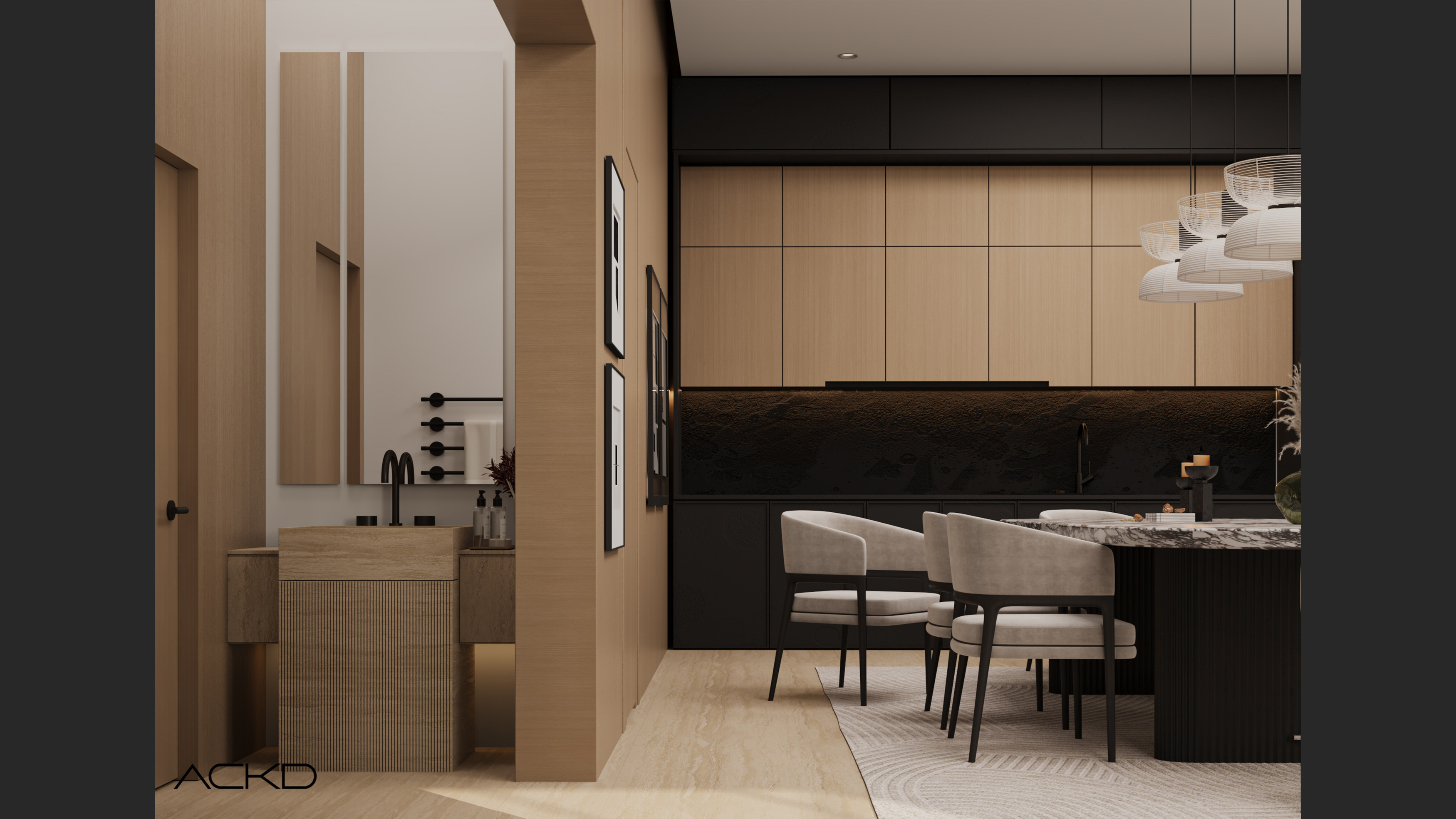 تصميم فيلا خاصة في الرياض بحي النرجس بمساحة ٤٥٠ متر مربع، استايل التصميم المودرن الفخم ، مواد فاخرة مثل الرخام والاخشاب ولمسات بالمايكروسمنت الاسود، إضاءة مخفية، وتفاصيل تم اختيارها بالاثاث بلمسات الوابي سابي ستايل .
