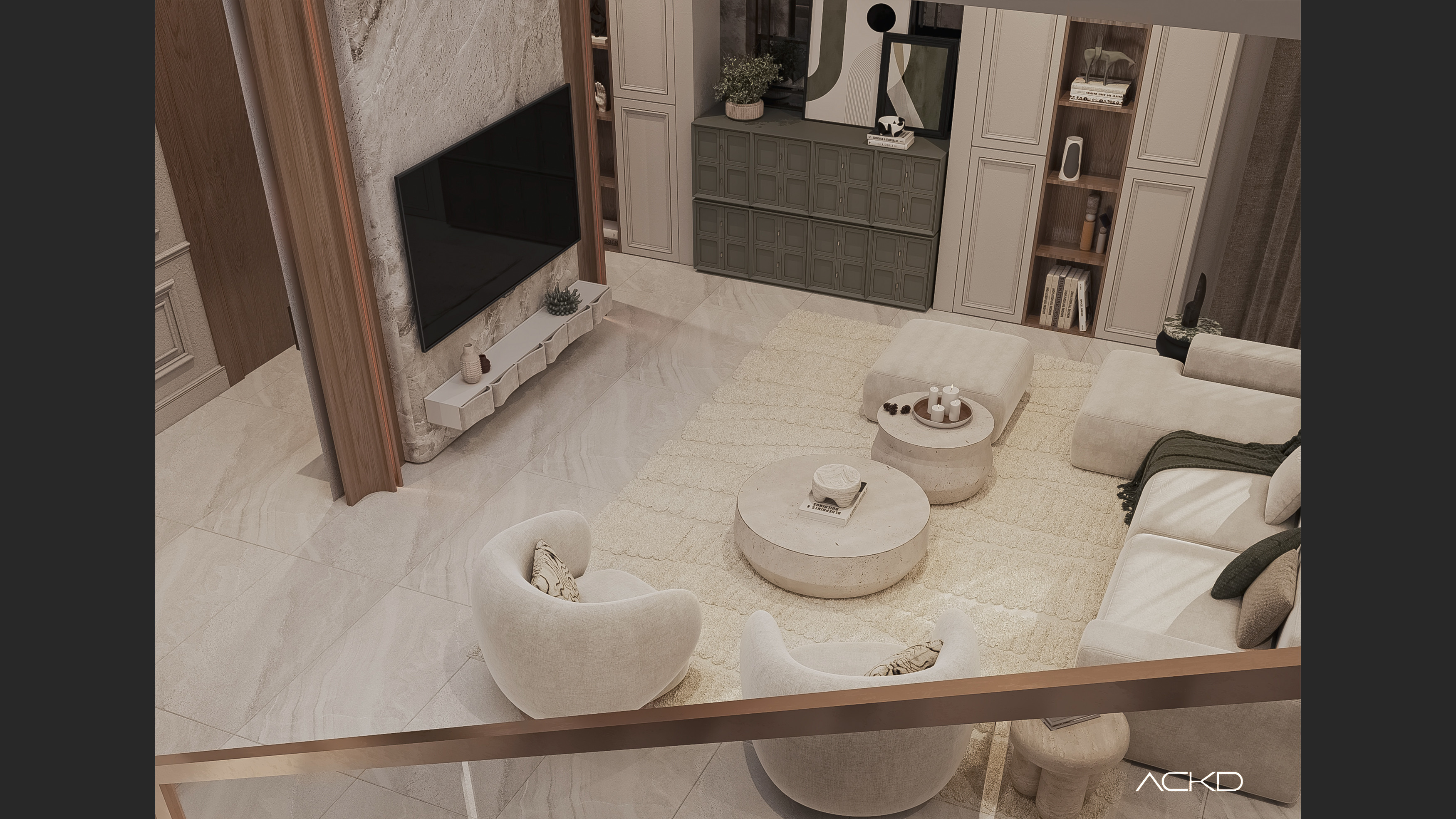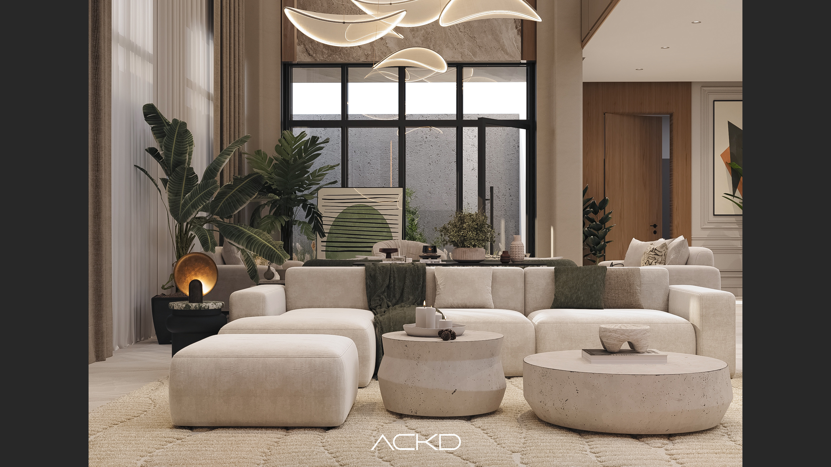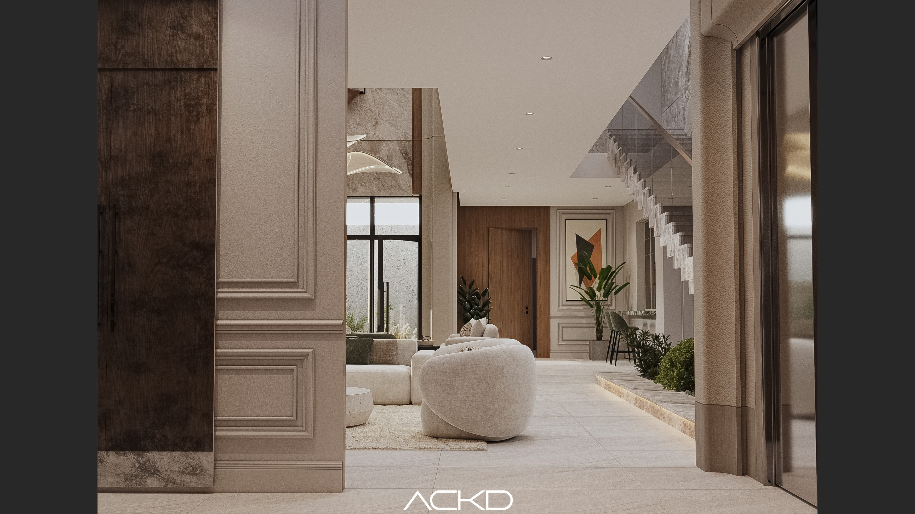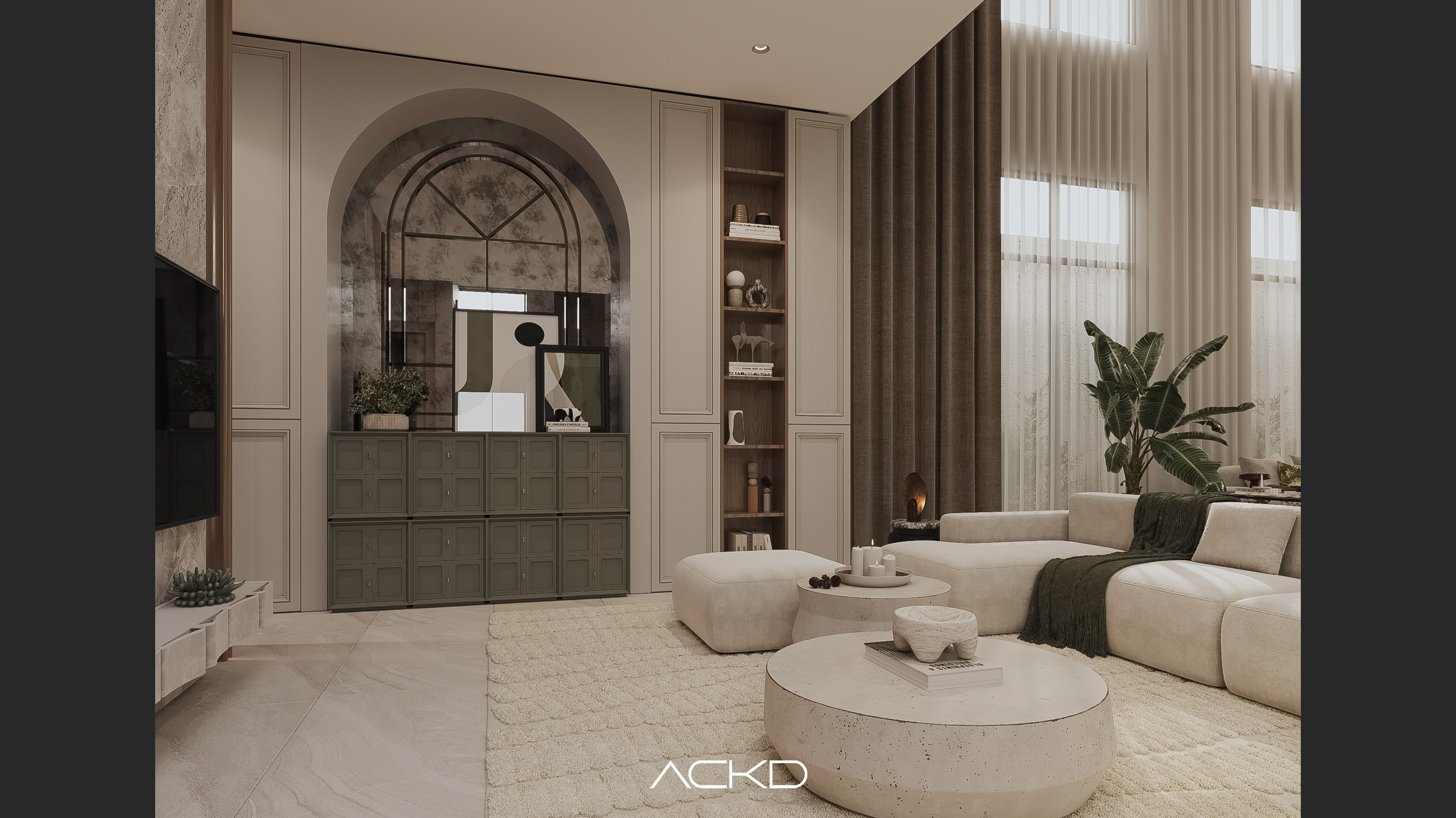 في أحد أحدث مشاريعنا بمدينة الرياض، أعدنا صياغة مفهوم الفخامة العصرية من خلال تصميم داخلي راقٍ يجمع بين الأناقة والدفء في الصالة والصالون العائلي داخل فيلا خاصة. استلهمنا روح النيوكلاسيك وأضافنا لها لمسة عصرية هادئة، حيث تدرّجت لوحة الألوان بين البيج والبني، وتكاملت مع لمسات رمادية أنيقة، بينما أضفنا اللون الأخضر الفاتح ليمنح المكان طاقة نابضة وإحساساً بالتوازن والسكينة.