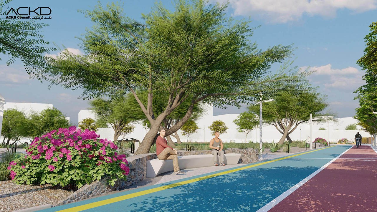 مضمار للمشاة و آخر للدراجات الهوائية: مسارات مصممة للمشي وركوب الدراجات، مع توفير مراعاة للراحة والسلامة.